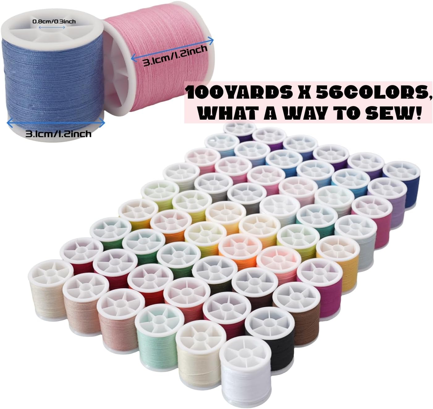 Introducing the 56 Spools Sewing Thread Kit, perfect for all your hand sewing and machine sewing needs! This colorful polyester thread set comes with 56 vibrant shades, each spool containing 100 yards of high-quality thread. With a total of 5600 yards of thread in this kit, you'll have plenty of options for all your sewing projects.